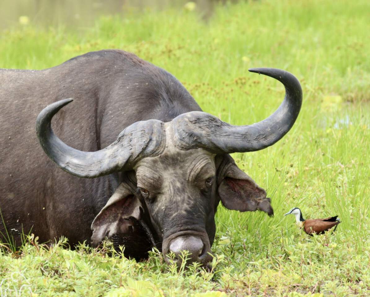 De dagen daarna hebben we diverse gamedrives gedaan. Omdat het hier zo (in het regenseizoen) groen en dichtbegroeid is, vonden we dit een totaal andere ervaring dan in Serengeti waar alles uitgestrekt en open is. Je hoort bijvoorbeeld de olifanten wel maar je ziet ze niet, totdat je de bocht omgaat en ze ineens vlak voor je neus staan! Helaas misten we de groep Afrikaanse Wilde Honden op een haar; andere gasten van onze lodge hadden ze net voor ons gespot! Maar goed, het blijft wildlife en dat laat zich niet plannen. Gelukkig maar.